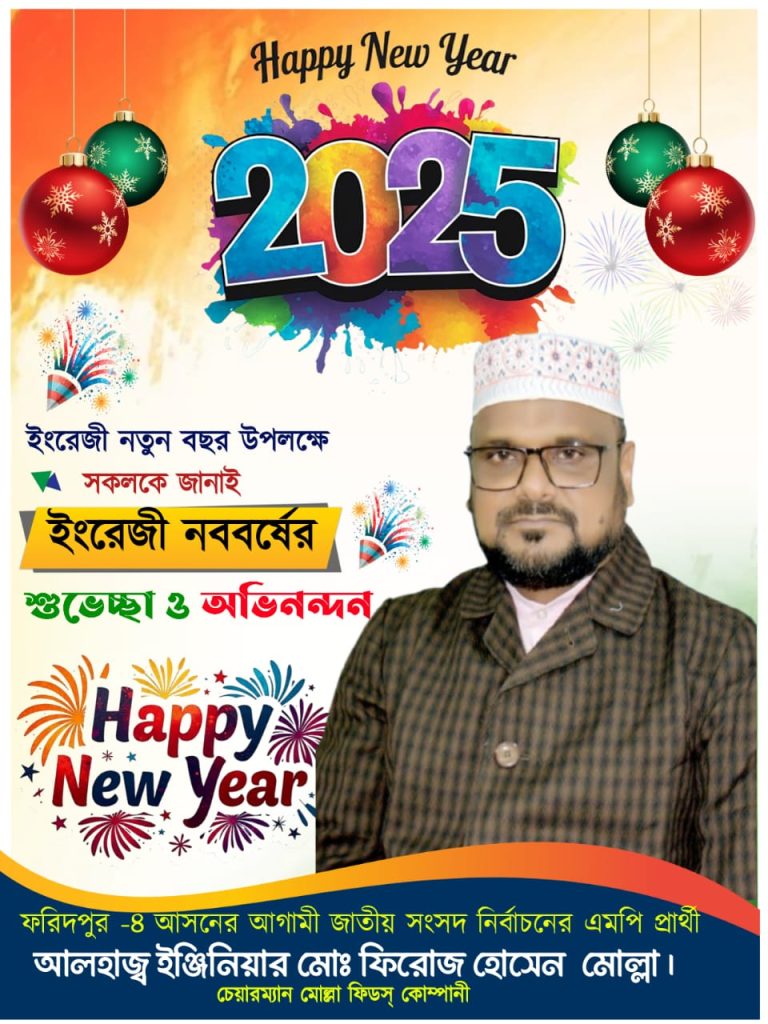 ভাঙ্গা,সদরপুর,চরভদ্রশন সহ দেশবাসীকে ইংরেজি নববর্ষের শুভেচ্ছা জানিয়েছেন আলহাজ্ব ইন্জিনিয়ার ফিরোজ হোসেন মোল্লা।