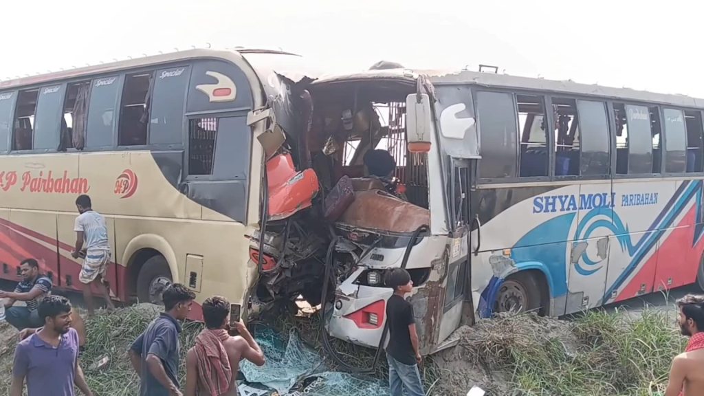 এদিকে, দুটি বাসের চালক ও সহকারী দুর্ঘটনার পর পালিয়ে গেছেন। পুলিশ তাদের গ্রেপ্তারের চেষ্টা চালাচ্ছে।
