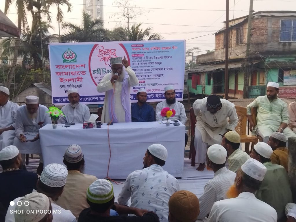 বাংলাদেশ জামায়াতে ইসলামী ফকিরহাট উপজেলার ৪নং ফকিরহাট সদর ইউনিয়ন এর উদ্যোগে ইফতার মাহফিল ও কর্মী টিএস প্রোগ্রাম অনুষ্ঠিত হয়।