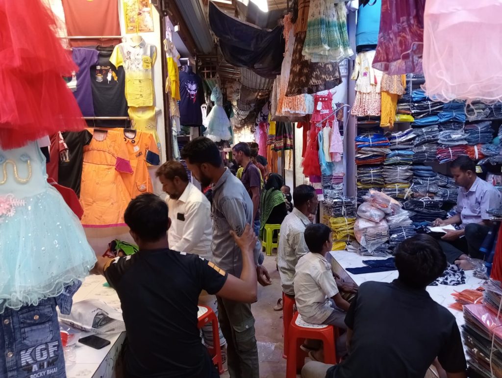 নিয়ে যাবো। এখানে একসঙ্গে অনেক দোকান থাকায় পছন্দমতো কেনাকাটা করা যায়। আরেক স্থানীয় ক্রেতা, দক্ষিণ দেবীপুর গ্রামের হাবিবুর রহমান জানান, এবার সব ধরনের পণ্যের দাম একটু বেশি। বাসা থেকে বাজেট করে এসে কোনো কিছু কেনা সম্ভব হচ্ছেনা। যা অনেক মধ্যবিত্ত পরিবারের জন্যে সামর্থ্যের বাইরে। ব্যবসায়ীরা বলছেন, রমজান শুরুর এক সপ্তাহ পর থেকেই ঈদের কেনাকাটা শুরু হয়েছে। পুরোদমে বিক্রি শুরু না হলেও, অন্যবারের তুলনায় এবার বিক্রি ভালো হওয়ার আশা ব্যবসায়ীদের। তারা জানান, বরাবরের মতো ছেলেদের তুলনায় মেয়ে ক্রেতা বেশি। এবার ঈদকে সামনে রেখে মেয়েদের কালেকশনও অনেক বেশি। এছাড়াও ছেলেদের টি-শার্ট, জিন্স প্যান্ট, হালকা গরমের পাঞ্জাবি সহ ভালো মানের কালেকশনও আছে। তবে বিগত বছর গুলোর তুলনায় ফুটপাতের দোকানগুলোতে তেমন ভিড় লক্ষ্য করা যায়নি। ফুটপাতের বিক্রেতারা বলছেন, ঈদ যতো ঘনিয়ে আসবে ফুটপাতের দোকান গুলোতে ভিড় ততো বাড়বে বলে আশা করছি।