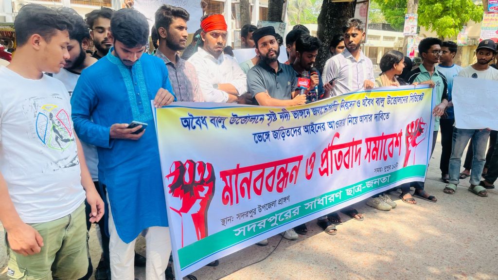 সদরপুরে অবৈধ বালু ব্যবসায়ী সিন্ডিকেটের বিরুদ্ধে মানববন্ধন ও প্রতিবাদ সমাবেশ