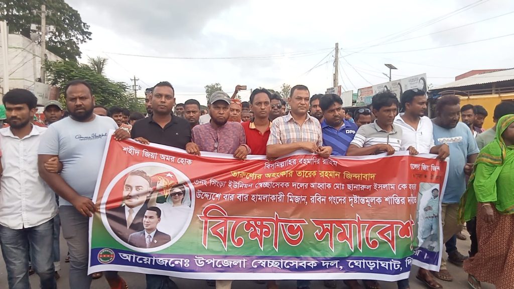 ঘোড়াঘাটে সেচ্ছাসেবকদলের আহবায়কের উপর হামলার প্রতিবাদে বিক্ষোভ মিছিল