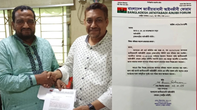 চিঠিতে আরও বলা হয়, “উচ্চ পর্যায়ের সিদ্ধান্ত মোতাবেক আপনার বহিষ্কার আদেশ প্রত্যাহার করা হলো। আপনি জাতীয়তাবাদী আইনজীবী ফোরামের দলীয় শৃঙ্খলার প্রতি অনুগত থেকে সংগঠনের সকল কার্যক্রমে পূর্বের মতো সক্রিয়ভাবে অংশগ্রহণ করবেন।”