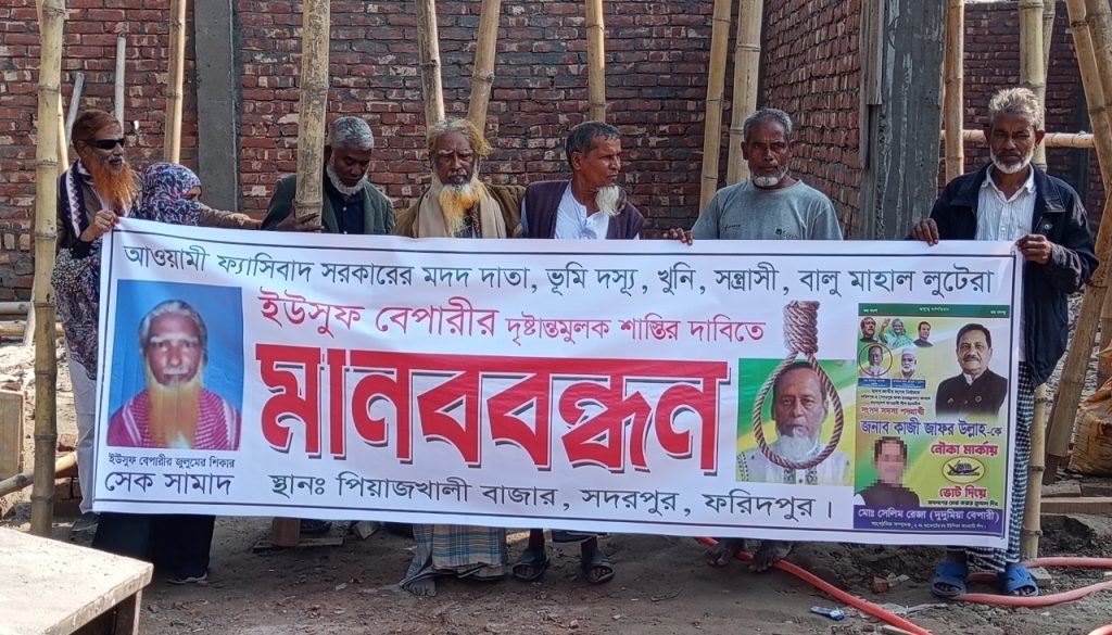 এসব কর্মকাণ্ডে অতিষ্ঠ হয়ে স্থানীয়রা একত্রিত হয়ে এ প্রতিবাদ কর্মসূচির আয়োজন করেন। দ্রুত তদন্তের মাধ্যমে ইউসুফ বেপারীর বিরুদ্ধে আইনানুগ ব্যবস্থা গ্রহণের দাবি জানান তারা।