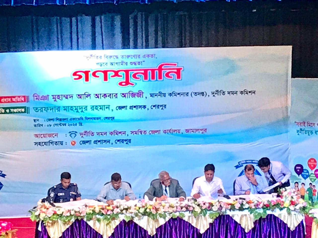 বিশেষ প্রতিনিধি, শেরপুর দুর্নীতি দমন কমিশন (দুদক) সমন্বিত জেলা কার্যালয় জামালপুরের আয়োজনে এবং শেরপুর জেলা প্রশাসনের সহযোগিতায় গণশুনানি অনুষ্ঠিত হয়েছে।