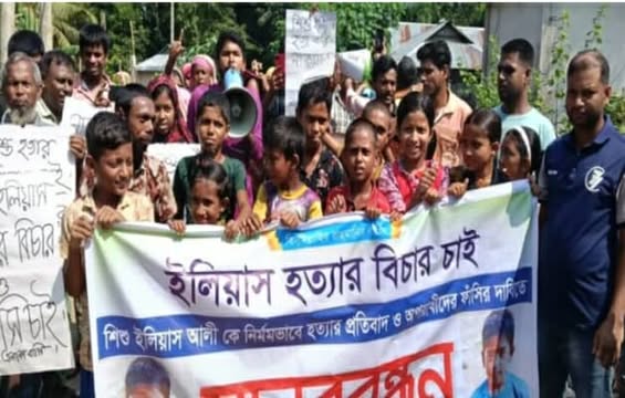 শেরপুরের ঝিনাইগাতীতে শিশু হত্যার বিচার দাবিতে মানববন্ধন